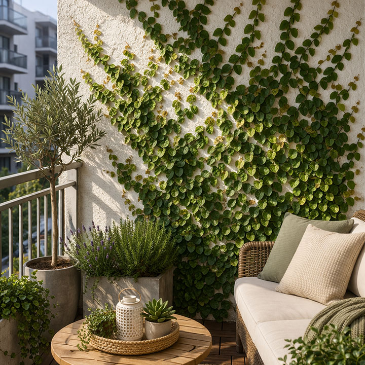 This is especially useful on small balconies where floor space is limited. Hanging planters let you add far more greenery without taking up valuable room for chairs, tables, or circulation space.