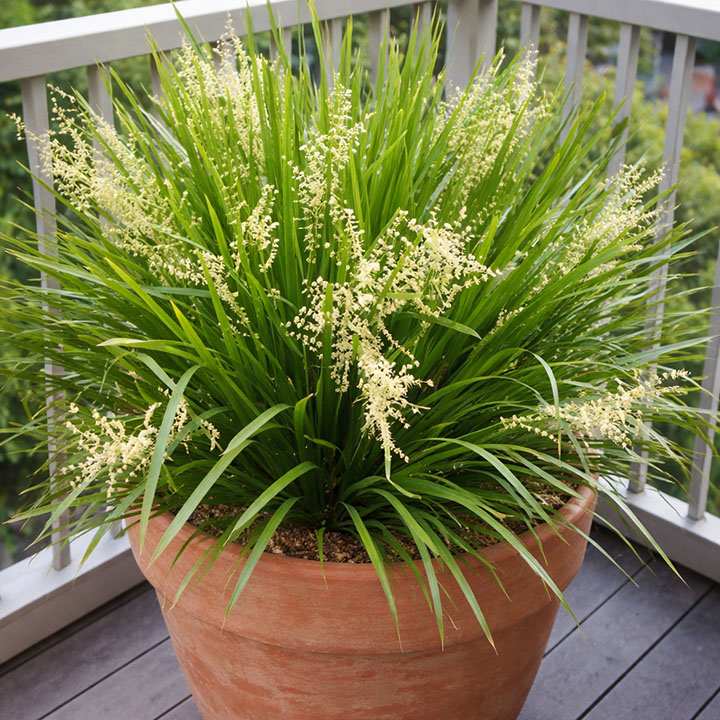 - Long 1200 mm footprint: the length creates a clean line and lets you build a strong border along the edge of the balcony.
