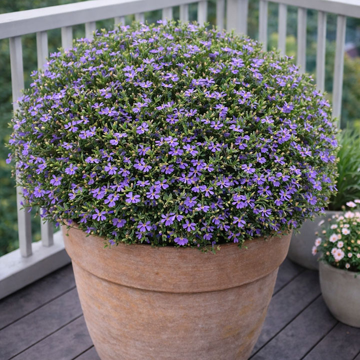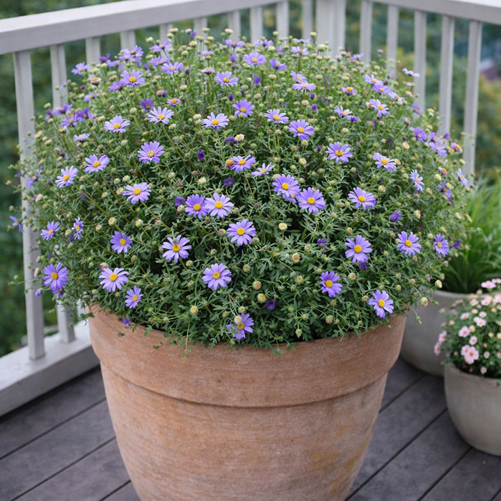 Brachyscome brings an easy cottage-garden feel to balcony pots. It stays compact, flowers for long periods, and suits containers, borders and troughs. It is ideal for softening the edges of a balcony display and pairing with tougher shrubs or strappy plants. Use it where you want cheerful colour without a heavy, woody look.