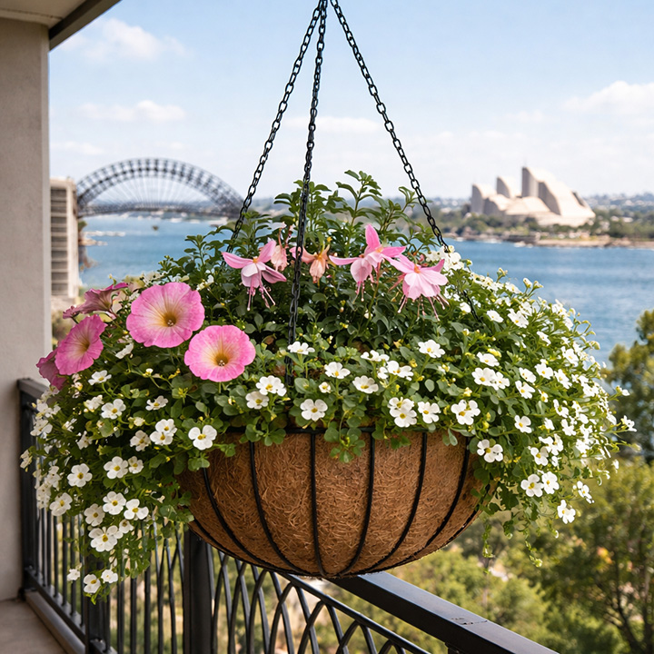 Canberra and Hobart: hardy flowering baskets, herbs, and cool-season annuals are often the safest route. Tender tropical plants usually need more shelter in these climates.