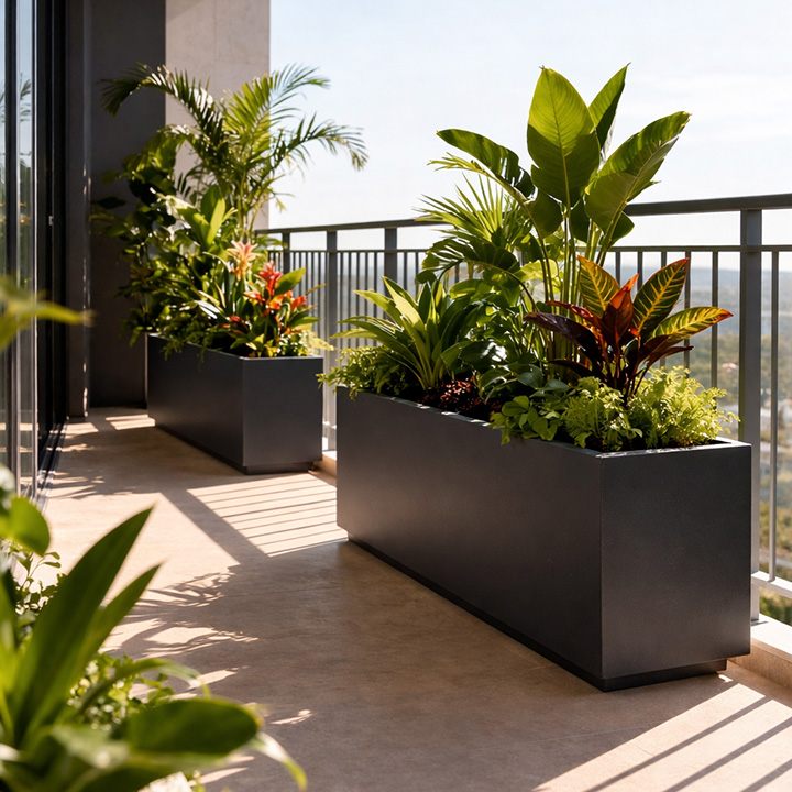 This kind of planter is ideal for balconies because it gives you strong structure without taking over the space. It can sit along the outer edge, against a wall, behind a seating area, or in corners where the balcony needs more weight and greenery.