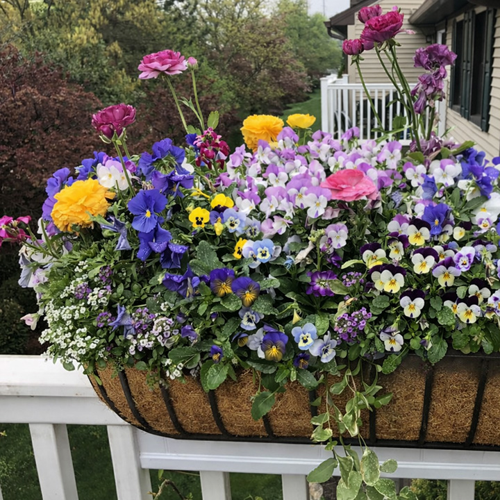 • Better visual rhythm: repeating multiple long troughs across the railing creates a much cleaner and more intentional effect than using many small mixed containers.