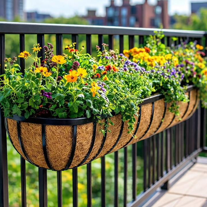 2. Railing planters: large 36-inch coco-lined railing troughs for real balcony impact
