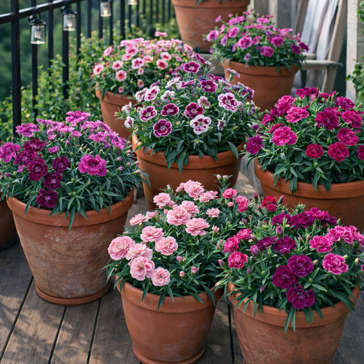 Dianthus is compact, colourful, and often lightly fragrant, making it an excellent flower for small balcony pots. It suits cottage-style and classic balcony gardens and usually performs best in mild conditions with good sun.
