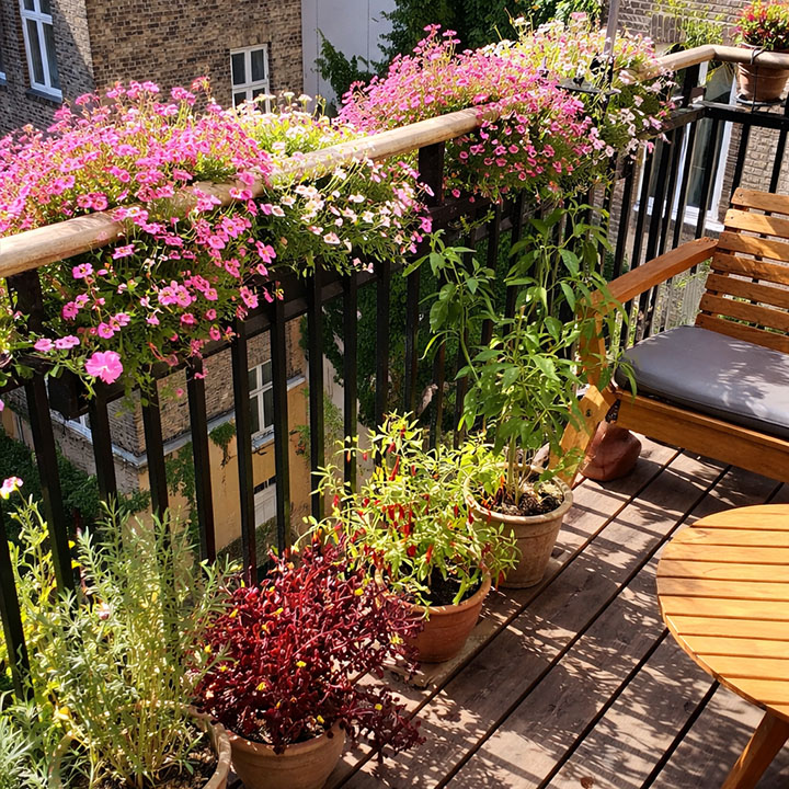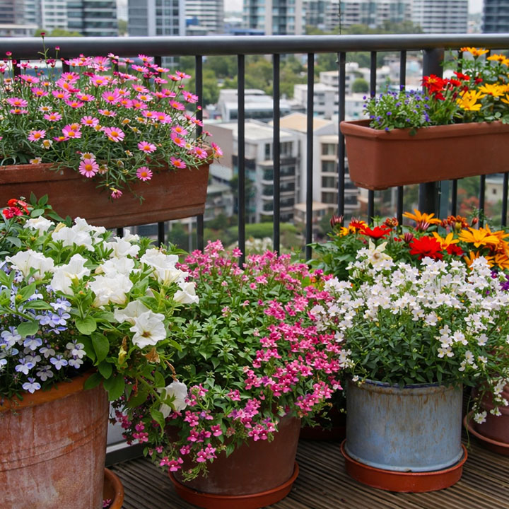 Balconies are perfect for flower gardening because most flowering plants grow beautifully in containers. With the right mix of trailing plants, compact bloomers, and upright flowering varieties, you can create colour at floor level, railing height, and eye level without needing a backyard.