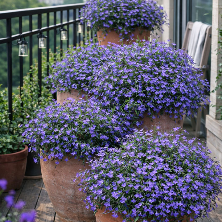 Lobelia is a lovely trailing or mounding flower that works well in hanging baskets and mixed containers. It usually brings blue, purple, or white tones and suits softer balcony planting schemes. In very hot weather it may need extra care, but in mild conditions it can be beautiful.