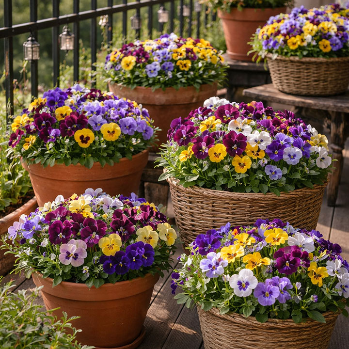 Pansies and violas are among the best flowers for cool-season balcony colour. They are ideal for autumn, winter, and spring in many parts of Australia and bring cheerful colour when summer flowers are fading. Violas are usually smaller and more delicate-looking, while pansies have larger blooms.