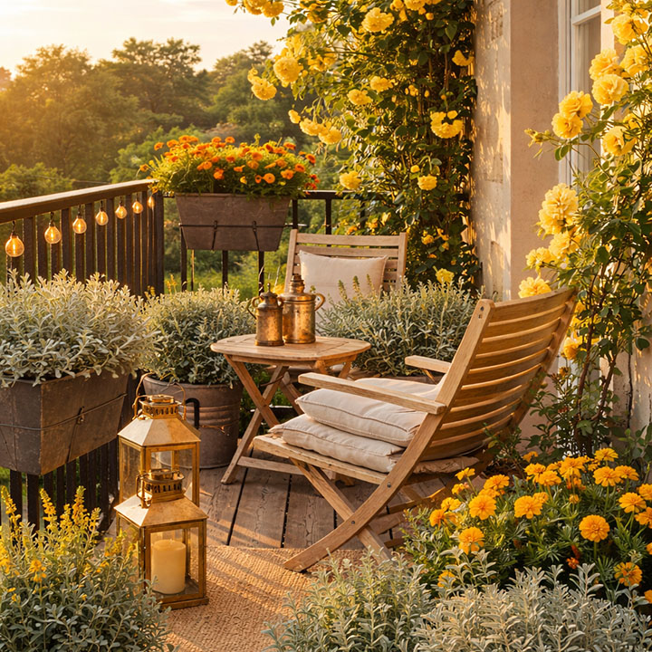 This combination is bright, cheerful, and ideal for warm, sunny balconies.