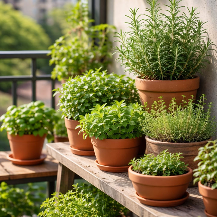 - Wind: Balconies can be windy. Choose sturdier herbs or group pots together for shelter.