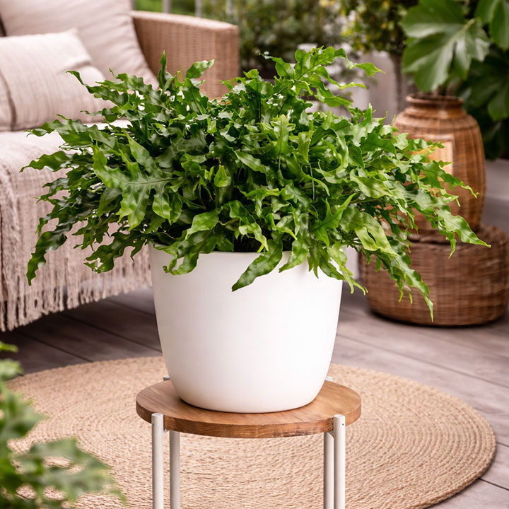 If you want a bolder tropical look, bird’s nest fern is excellent. Its broad glossy leaves create impact even in dim conditions, making it perfect for statement pots.