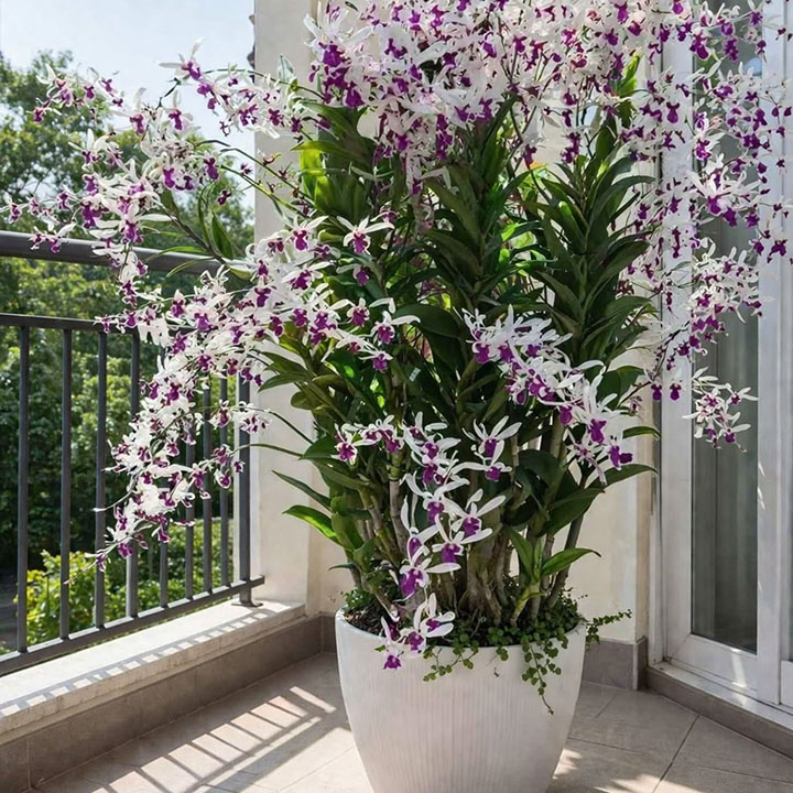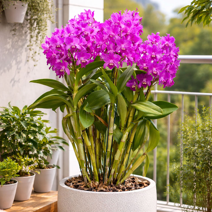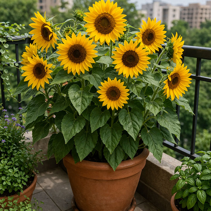 - Move up over time to a large final container around 50 to 70 cm wide if your balcony can handle the size and weight.