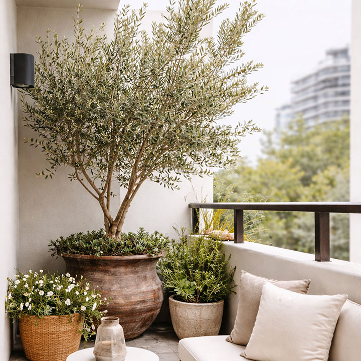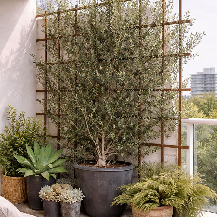 Olives are naturally adapted to conditions that are common on balconies: reflected heat, drying winds, strong sun, and limited soil space. They grow slowly enough to be manageable in containers, respond well to pruning, and can live for many years in a pot if looked after properly.